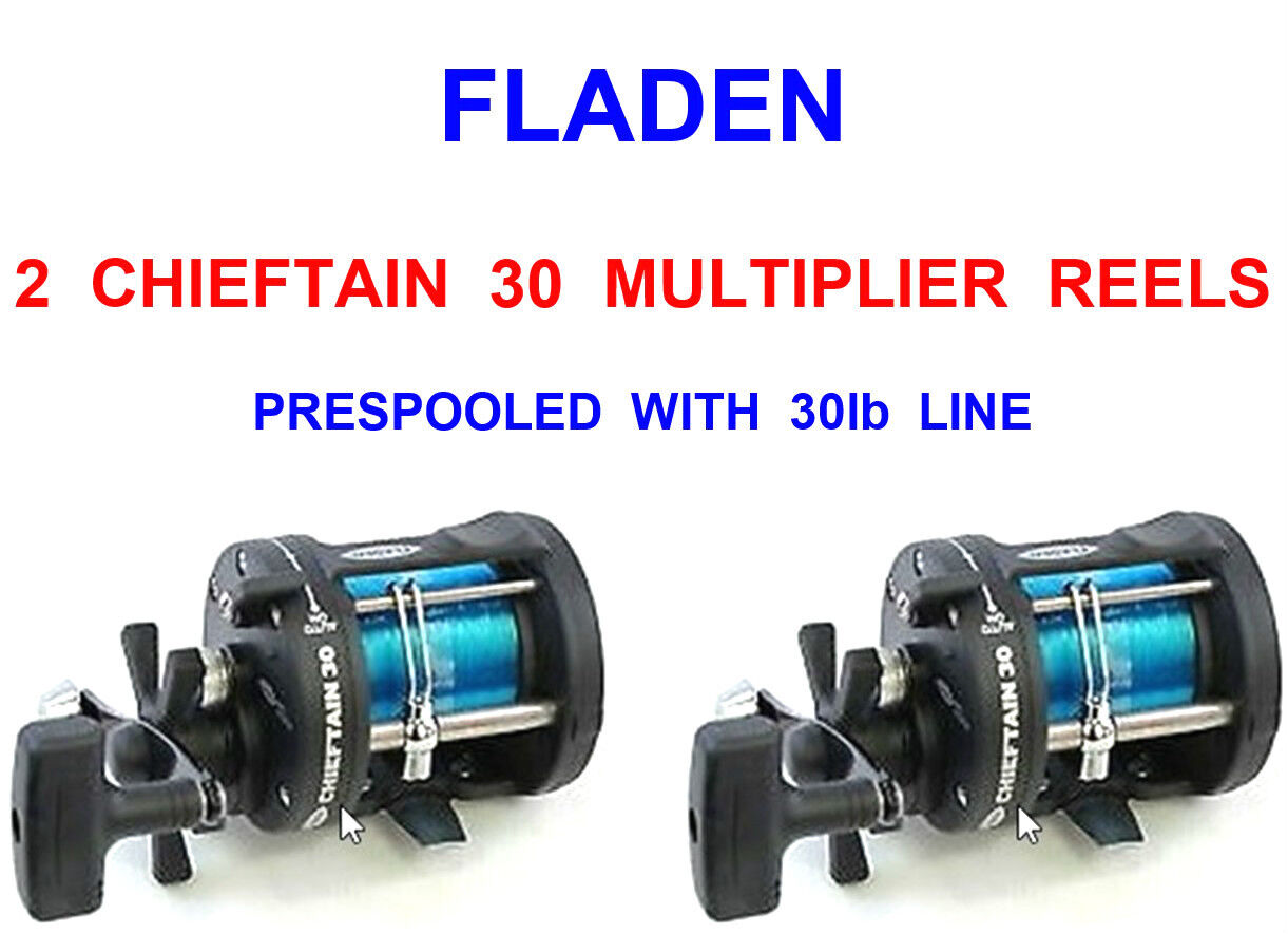 2 FLADEN CHIEFTAIN 30 MULTIPLIER REELS WITH LINE BOAT SEA FISHING TACKLE