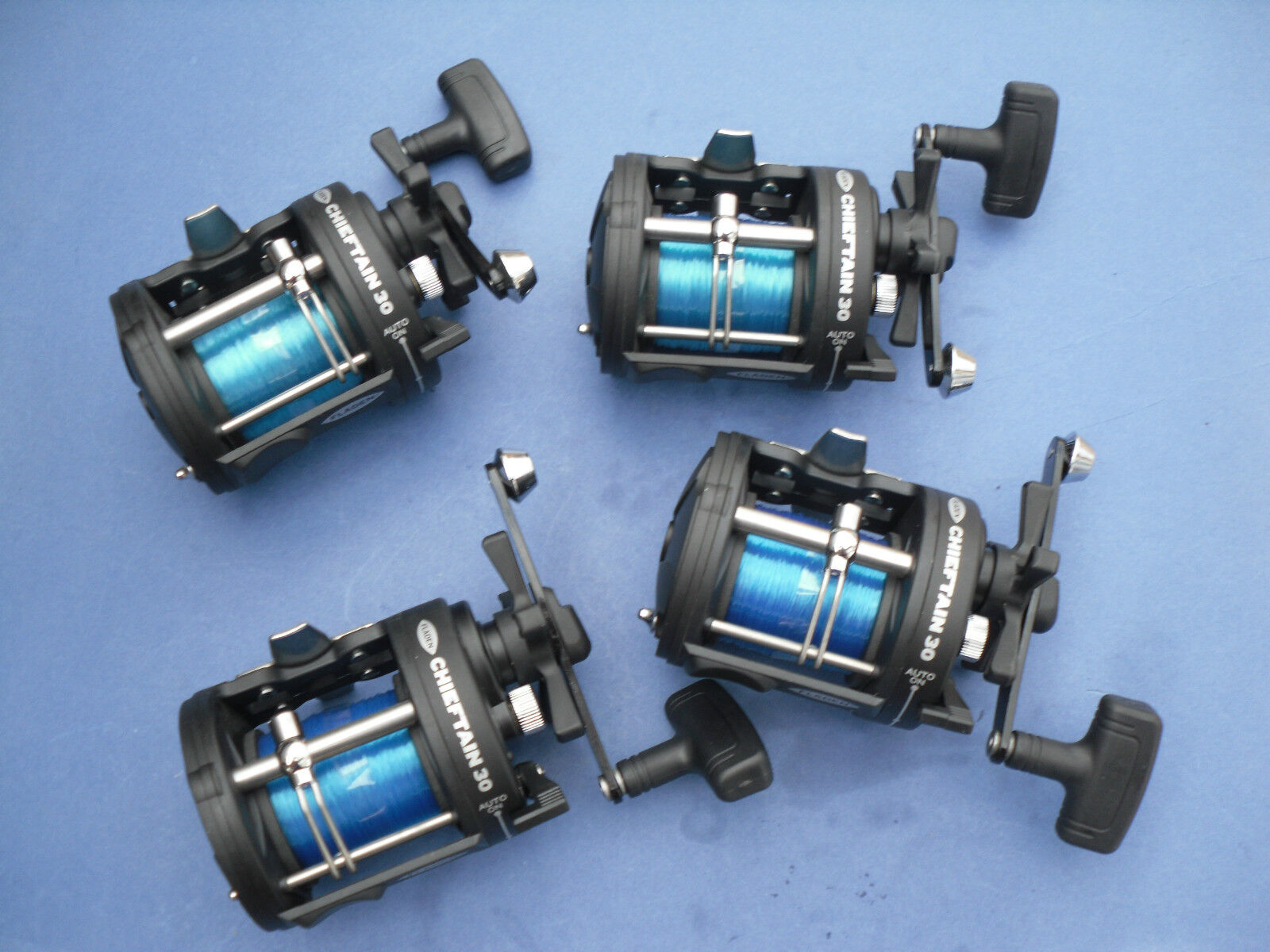 4 X FLADEN CHIEFTAIN 30 MULTIPLIER REELS WITH LINE ON BOAT SEA FISHING TACKLE
