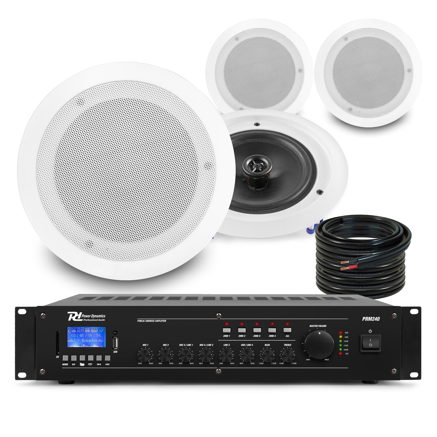 PD-CSAG8T 8" Ceiling Speakers & PRM240 Amplifier Set - 4-Zone Multiroom Sound