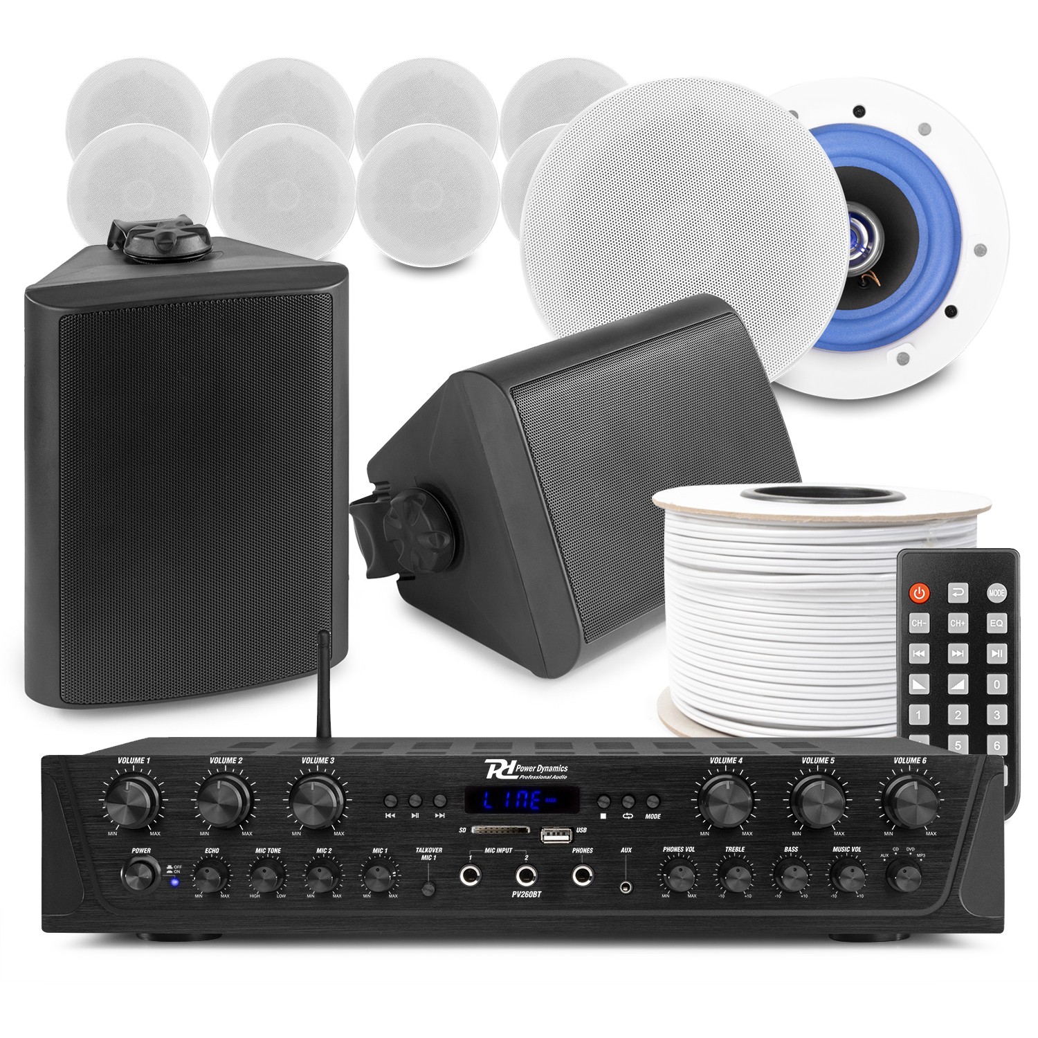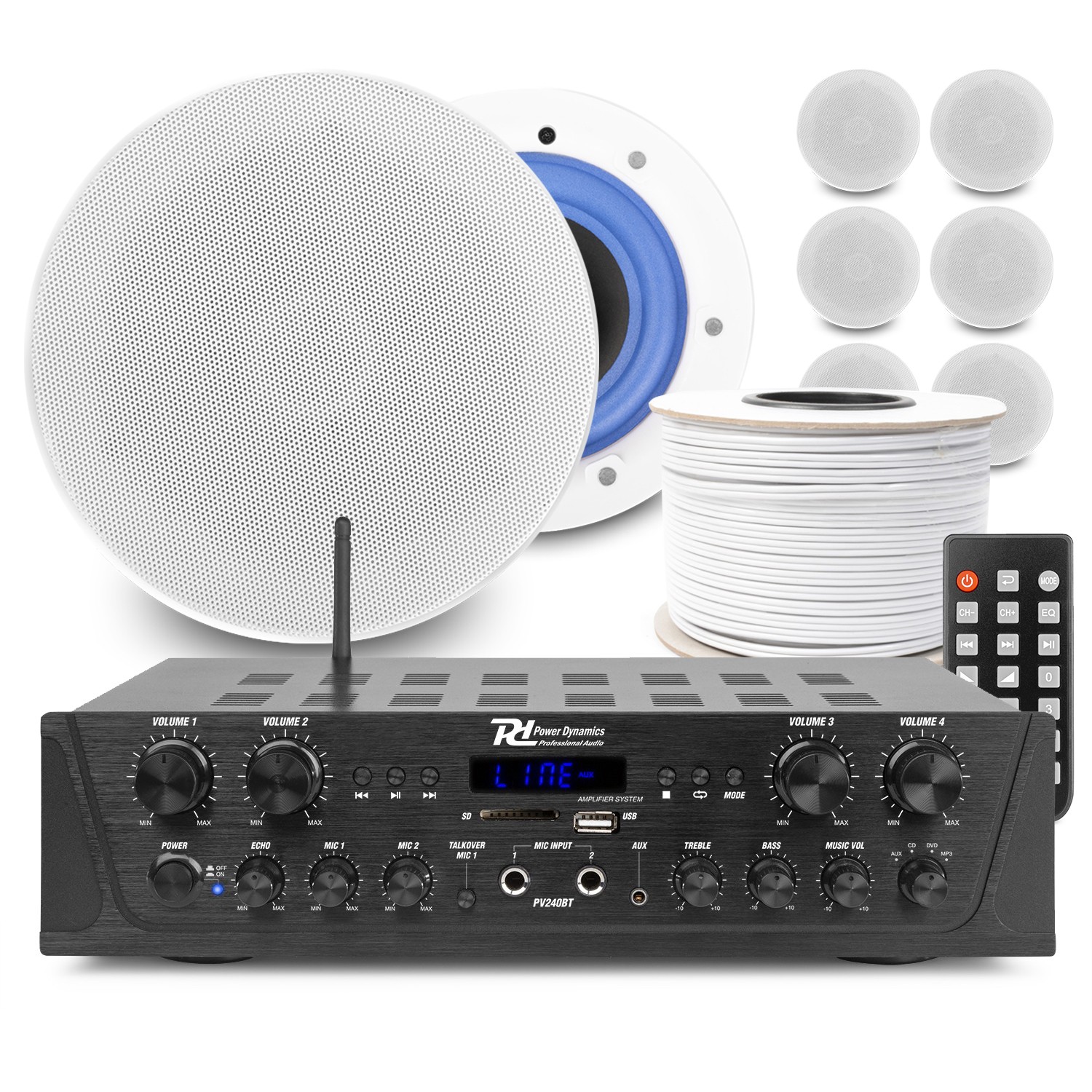 PV240BT 4-Zone Amplifier System with ESCS 6.5 Ceiling Speakers - Multiroom Audio