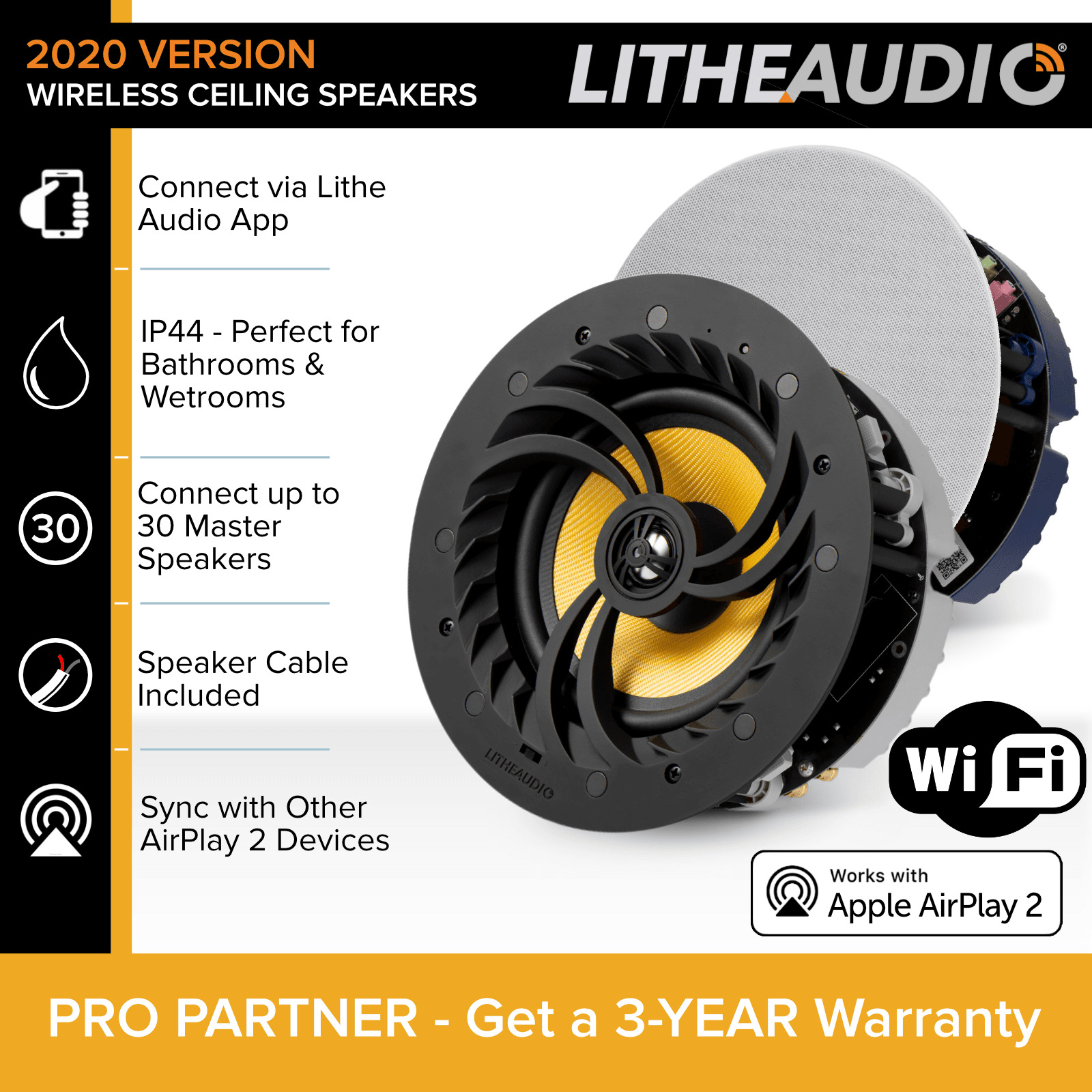 Lithe Audio WiFi Multi-Room Ceiling Speakers (Pair, Master/Slave)