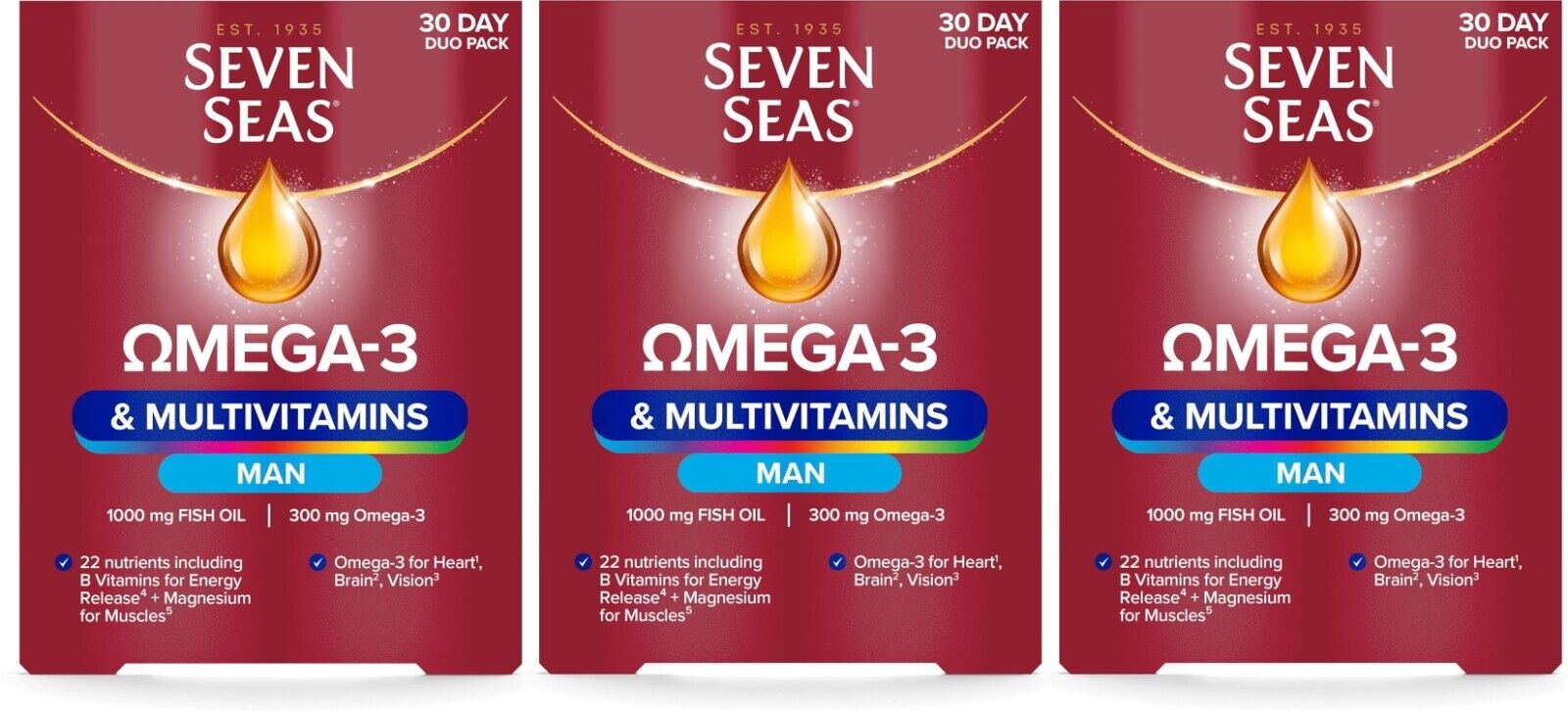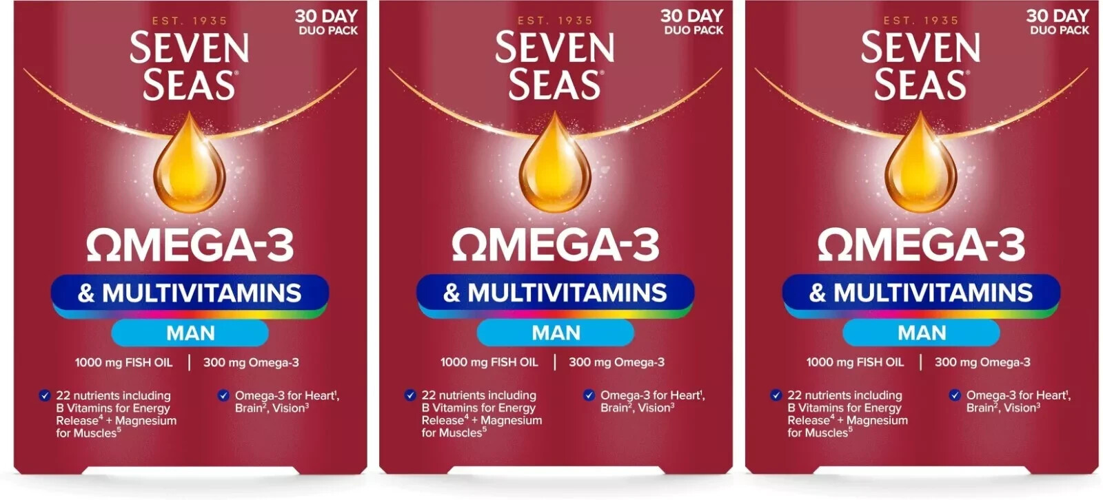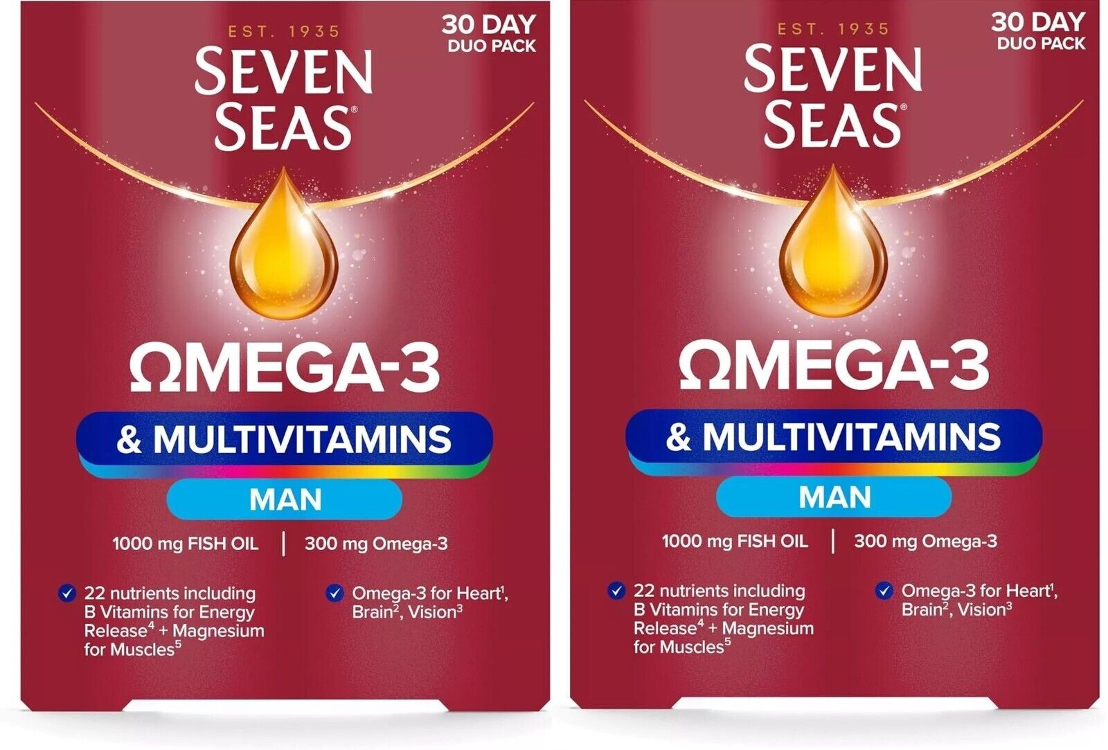 3xSeven Seas Omega-3 & Multivitamins Man, With Biotin and Iron, 30-Day Duo