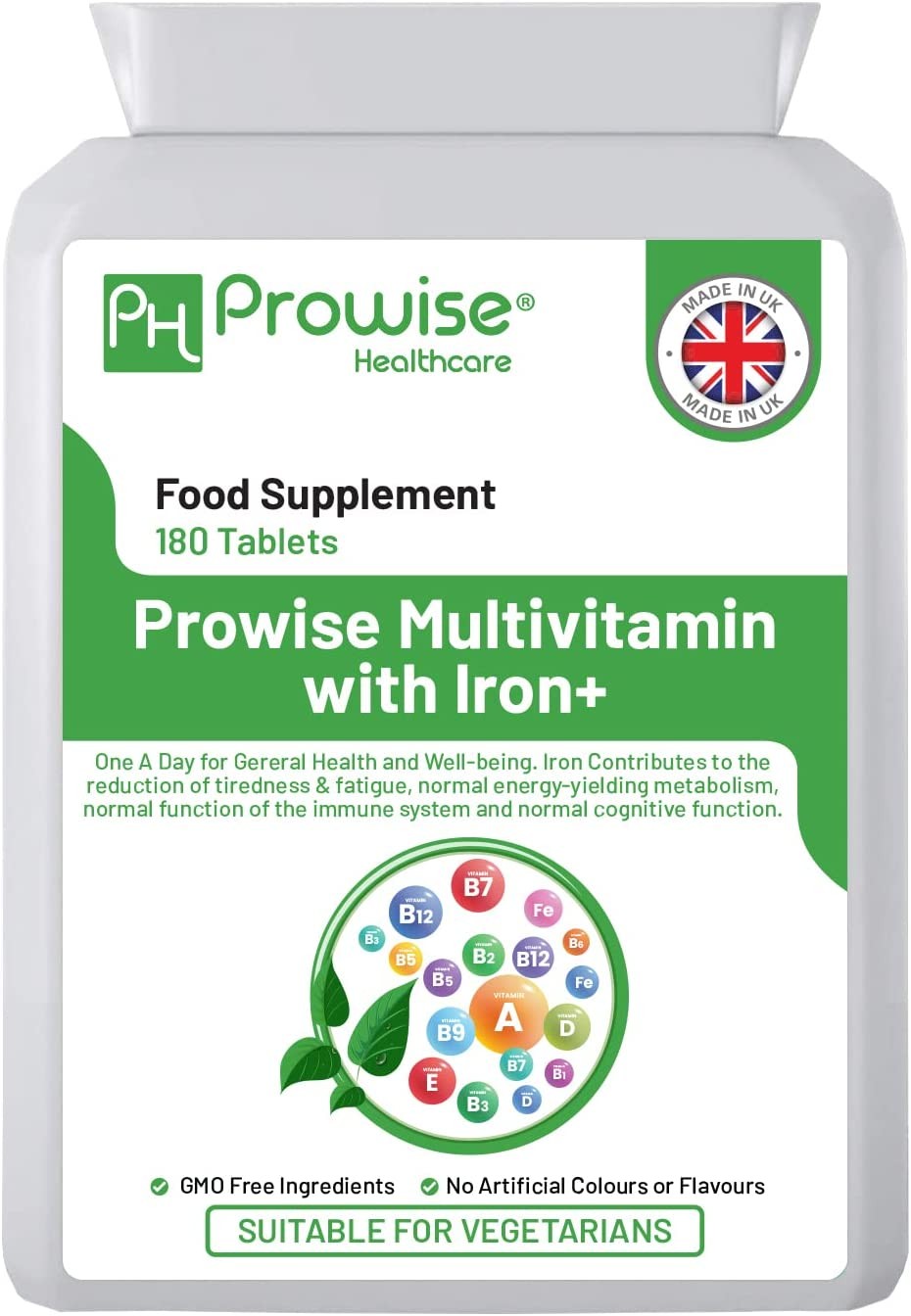 Multivitamins with Iron 180 Tablets, All essential vitamins, One a Day Unisex