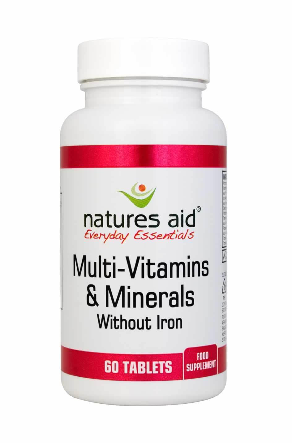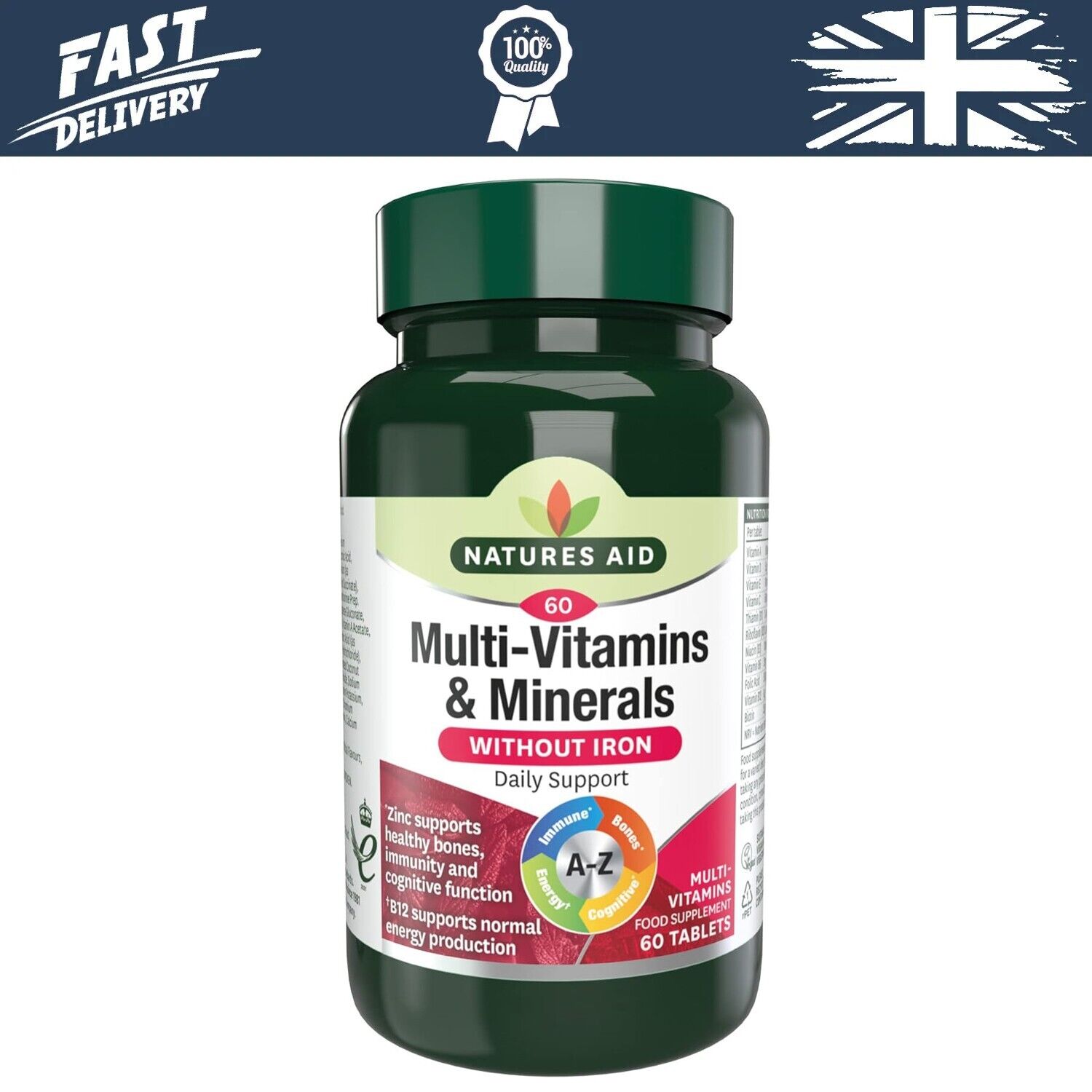 Natures Aid Multi-Vitamins and Minerals 60 Tablets Without Iron, One-a-Day and
