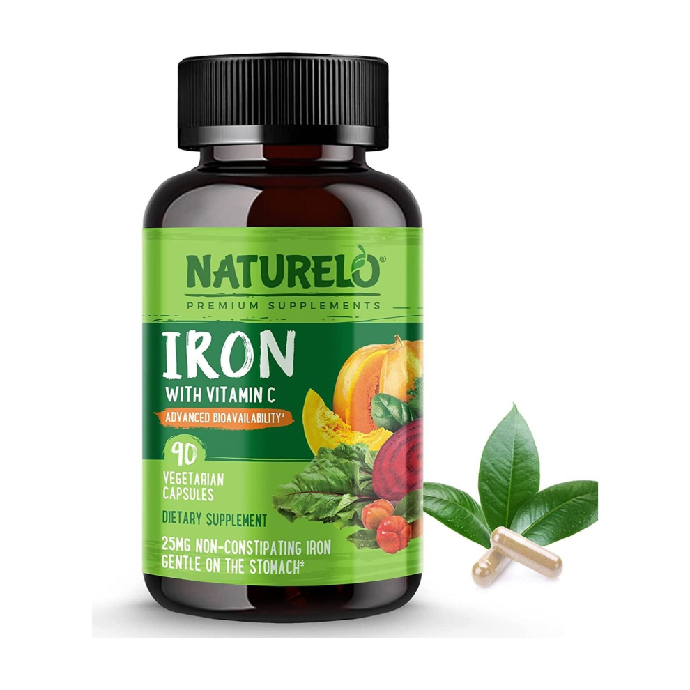 Naturelo Iron With Vitamin C Advanced Bioavailability Supplement Multi-Vitamins 90 Vegetarian Capsules, Dietary Supplement