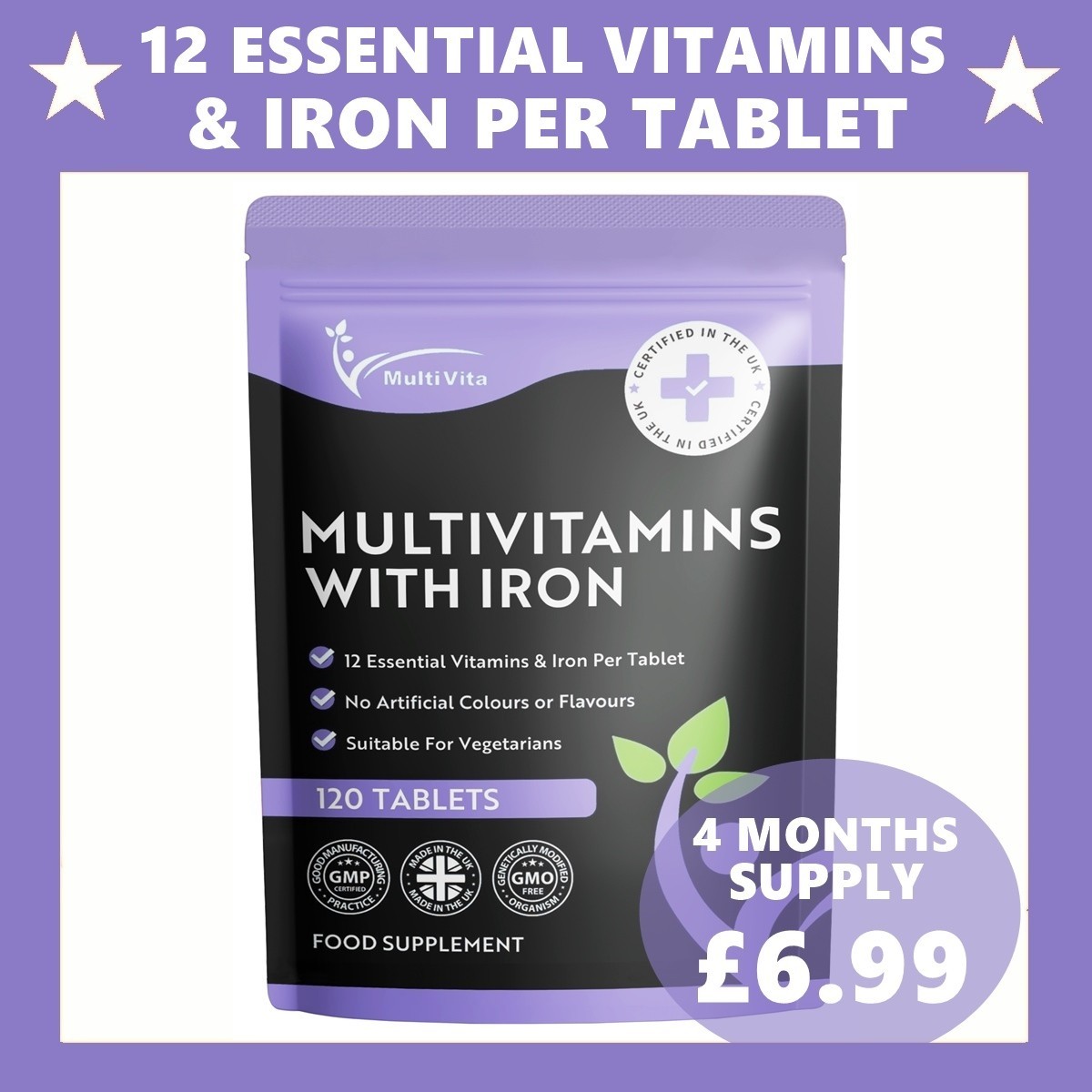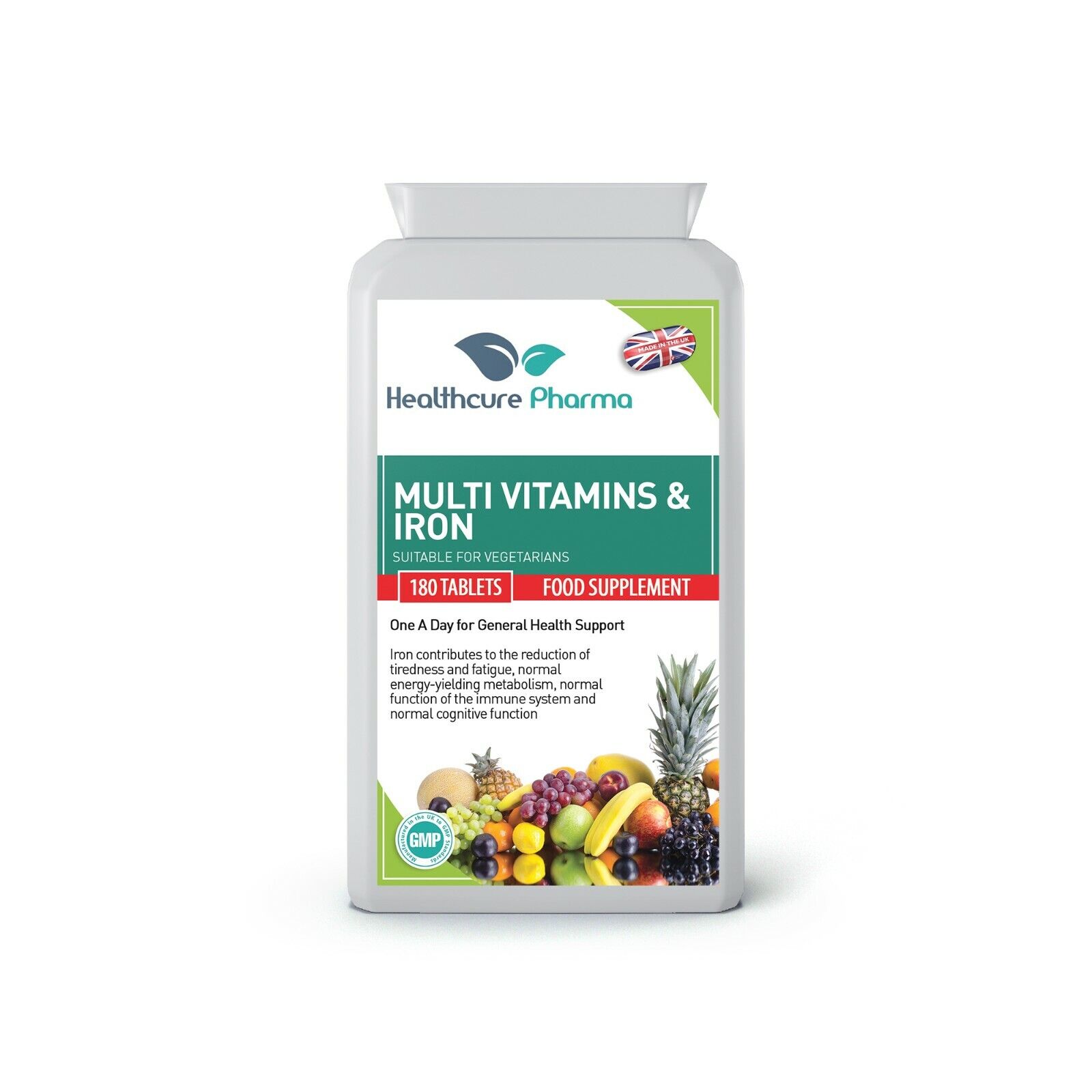 Multi Vitamins Iron 180 Tablets for Men & Women 1-a-day Multivitamins UK