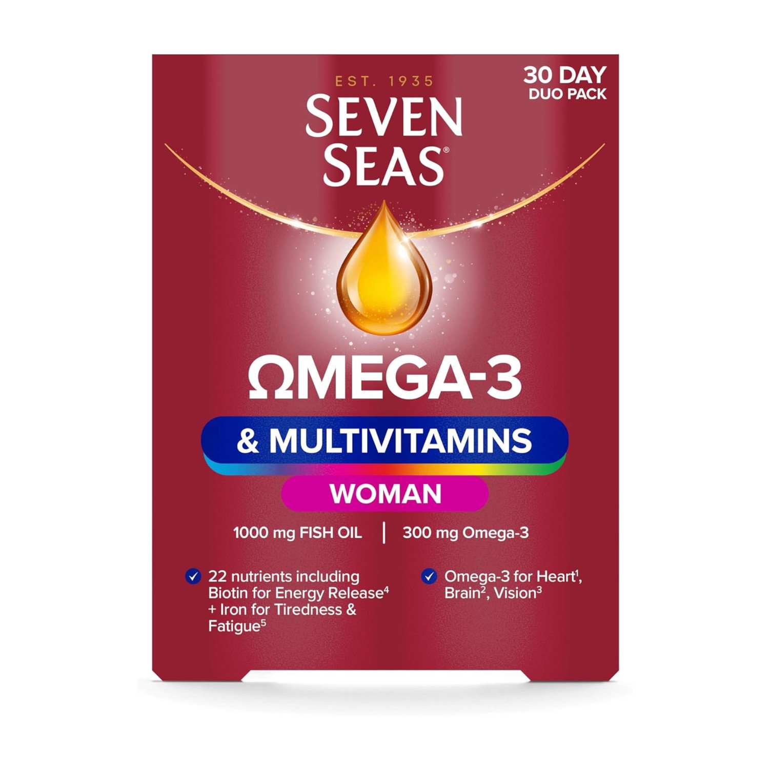 Seven Seas Omega-3 & Multivitamins Woman With Biotin and Iron | 30-Day Duo Pack