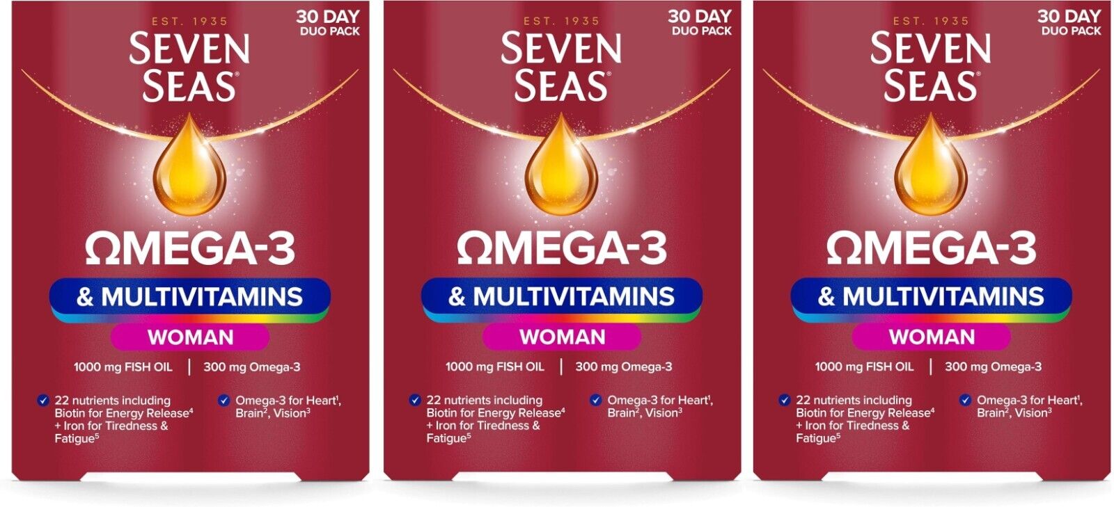 Seven Seas Omega-3 & Multivitamins Woman, Biotin and Iron, 30-Day Duo x 3 Packs