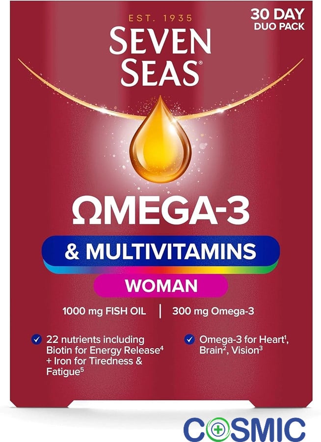 Seven Seas Omega-3 and Multivitamins Woman, with Biotin and Iron, 30-Day Duo