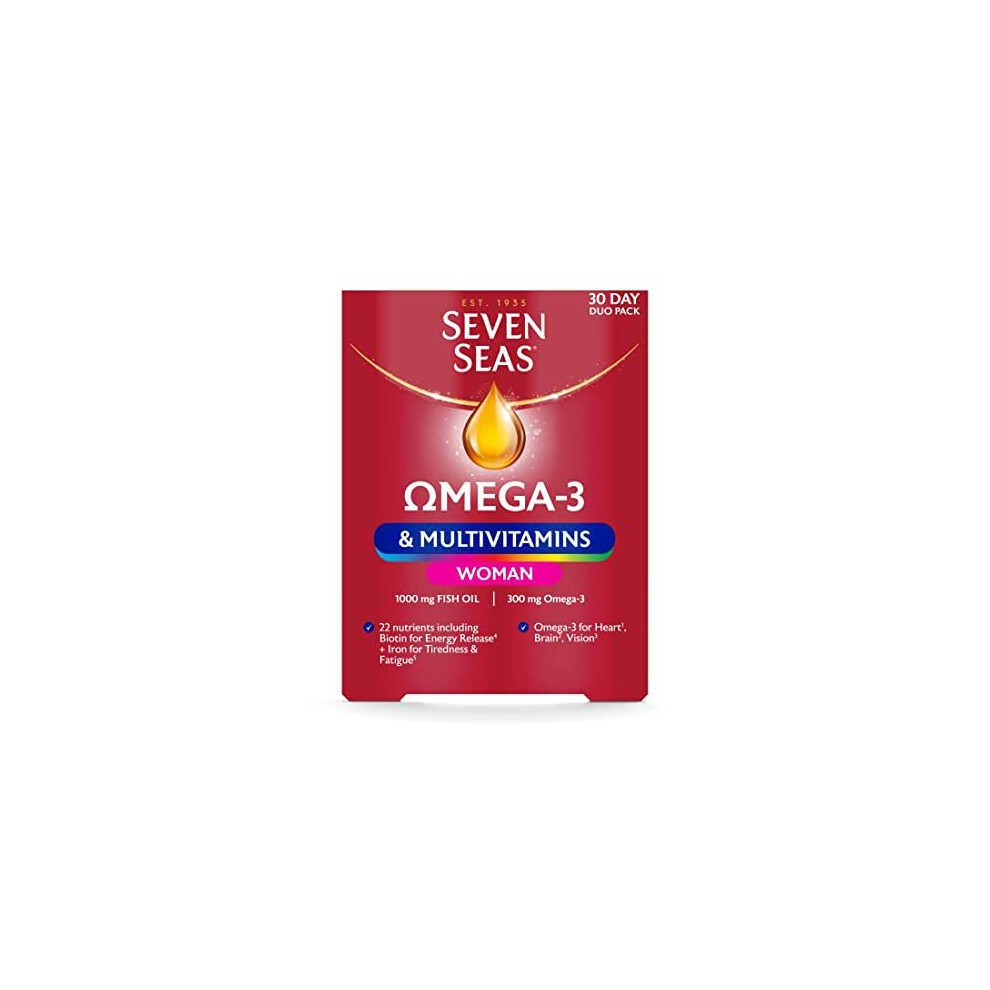 Seven Seas Omega-3 & Multivitamins Woman, With Biotin and Iron, 30-Day Duo Pack, 30 Omega-3 Capsules and 30 Multivitamin Tablets