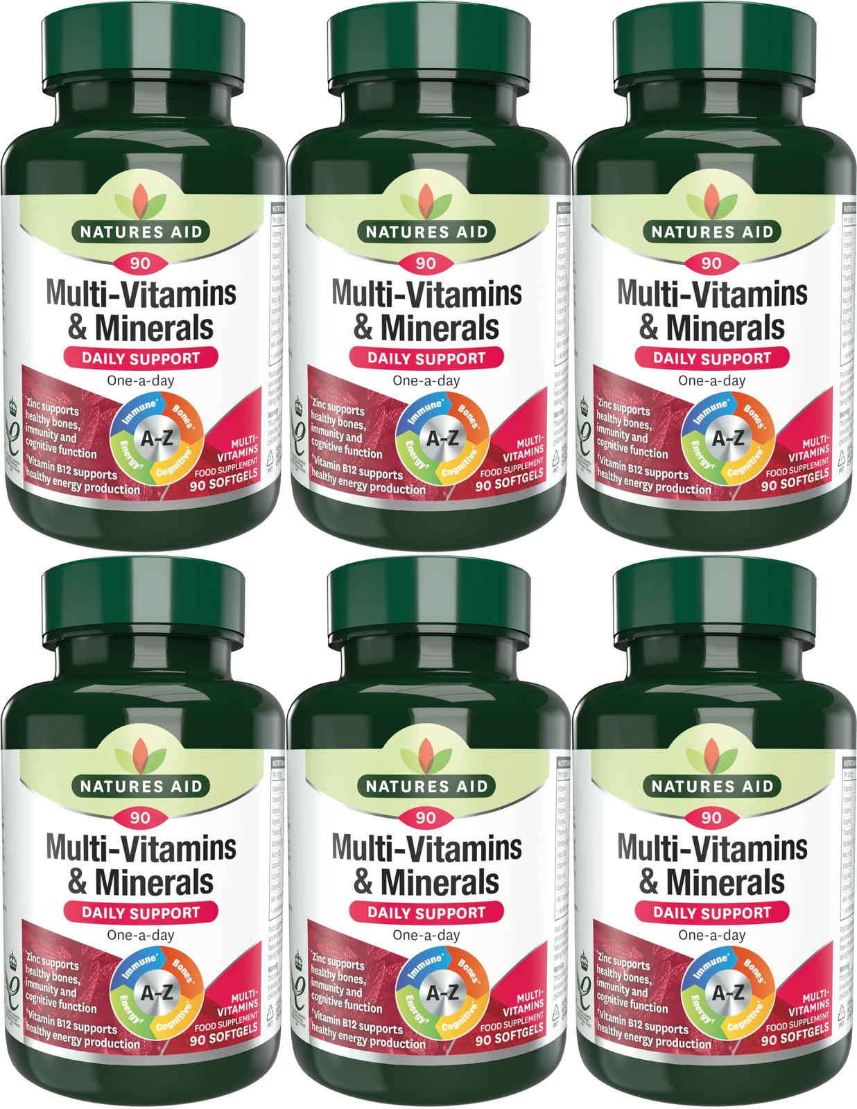 Nature's Aid Multi-Vitamins & Minerals with Iron 90 Softgels X 6