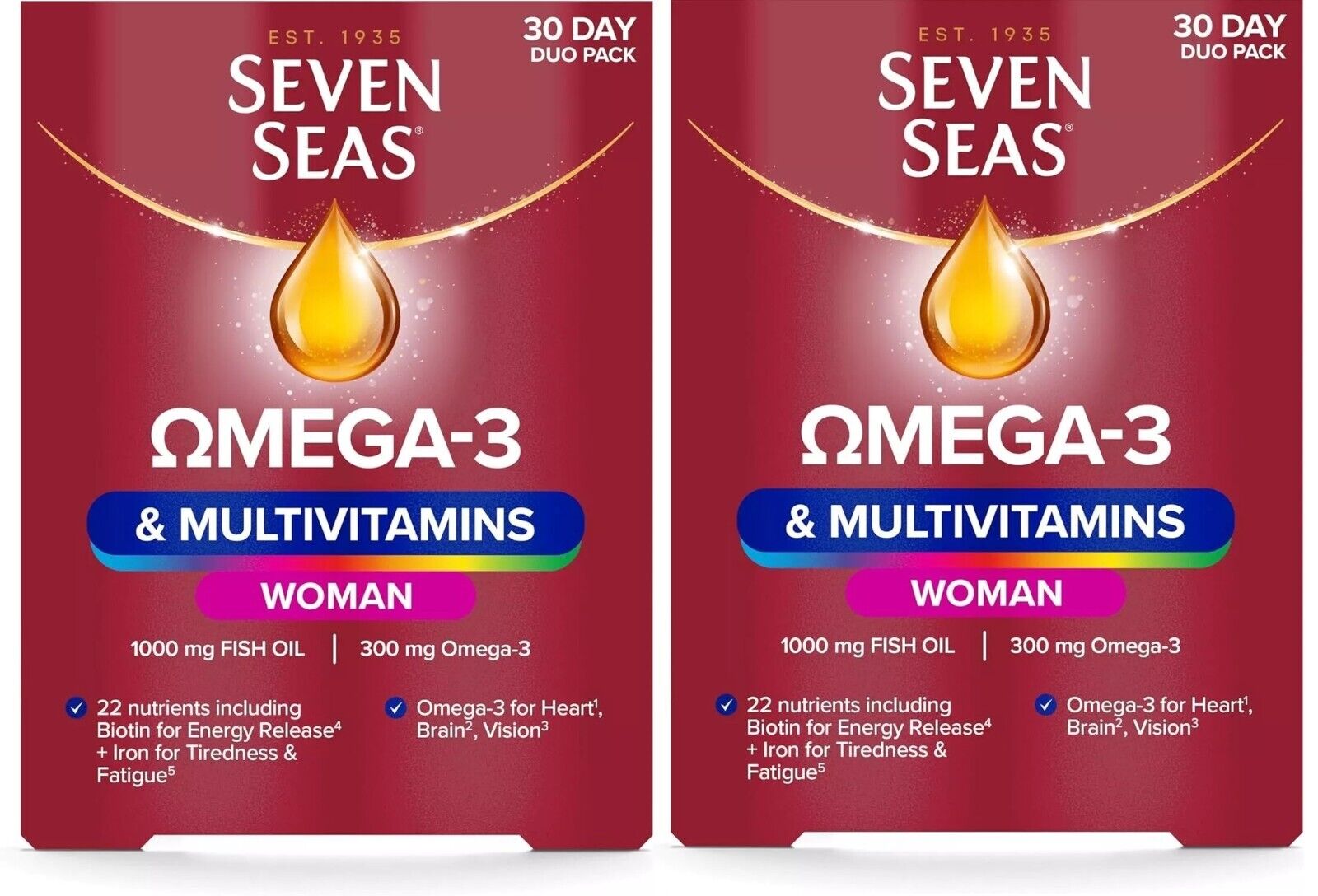 120 x Seven Seas Omega-3 & Multivitamins Woman, With Biotin and Iron, 30-Day Duo