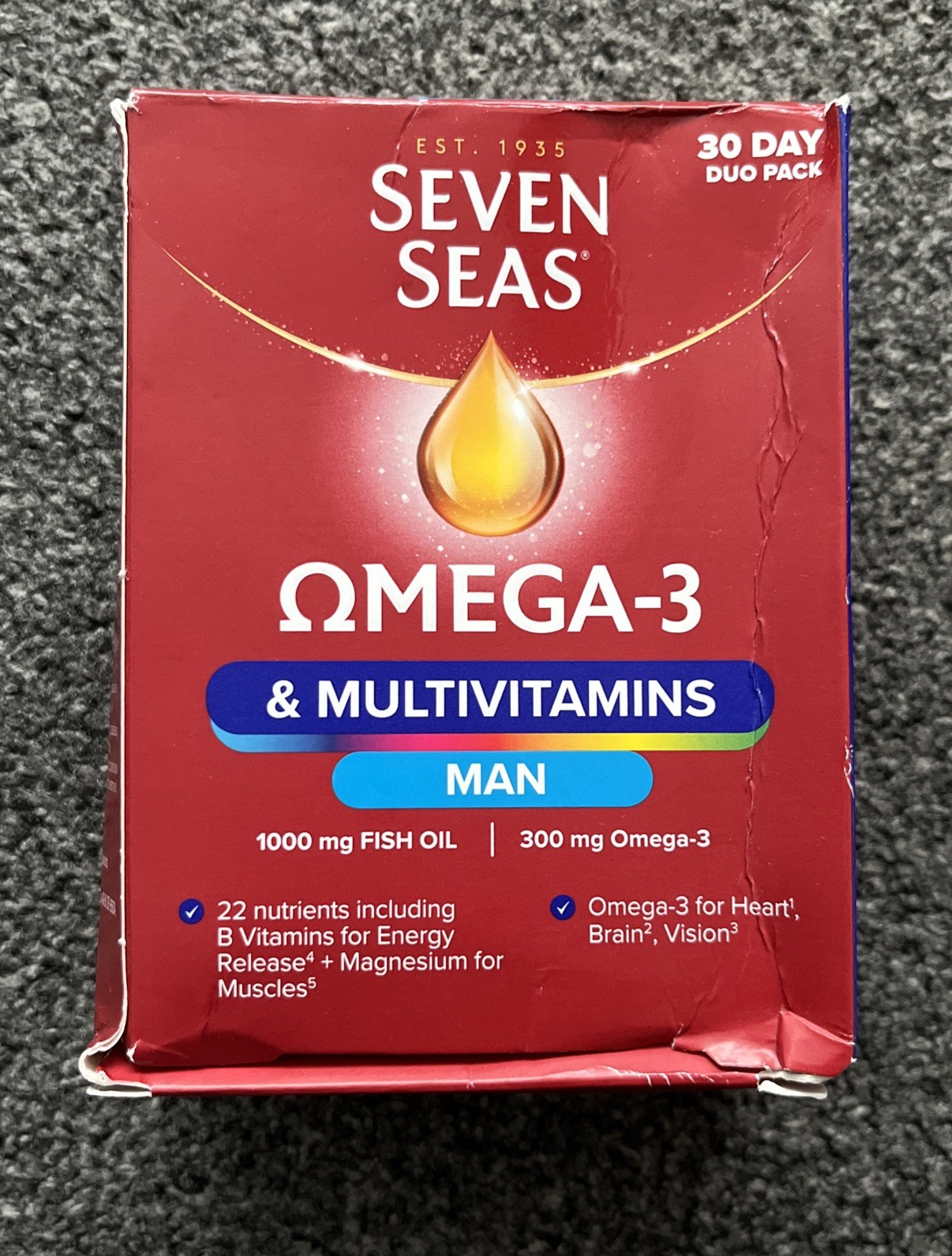 180 x Seven Seas Omega-3 & Multivitamins Man, With Biotin and Iron, 30-Day Duo