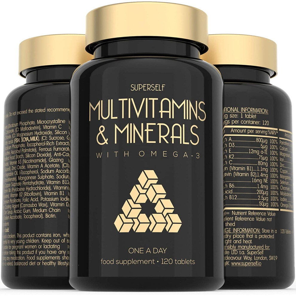 Multivitamins and Minerals with Omega 3 - Multivitamin Tablets for Men & Women - Multi Vitamins for Adults with Iron, Zinc, Vitamin D, C, B Complex -