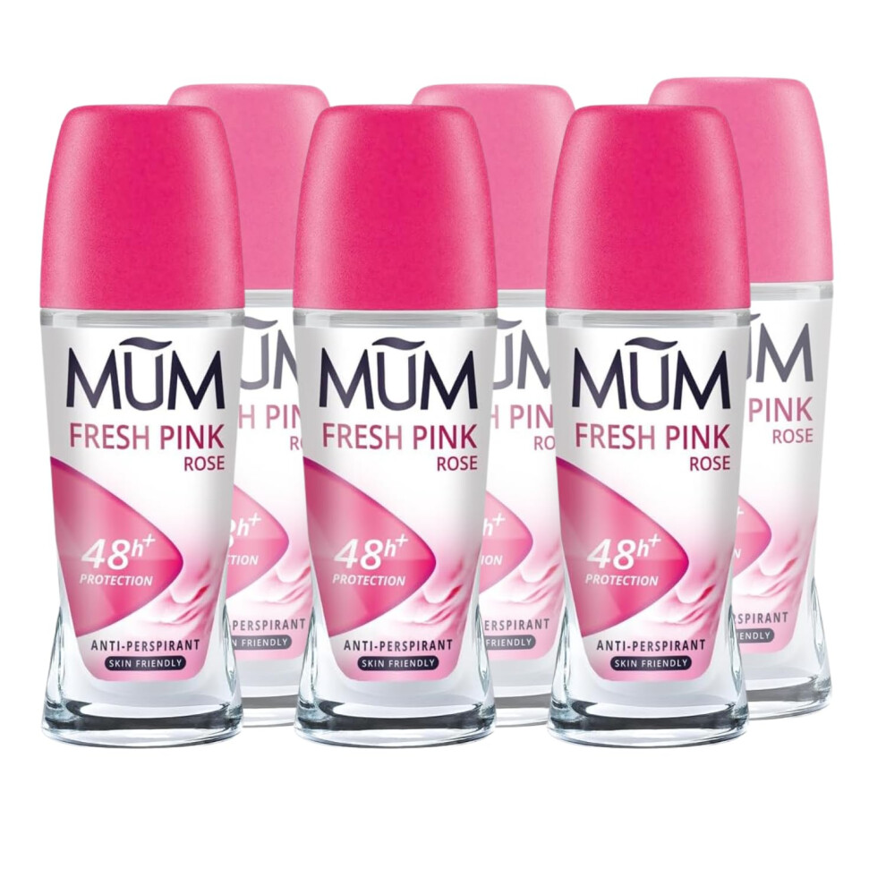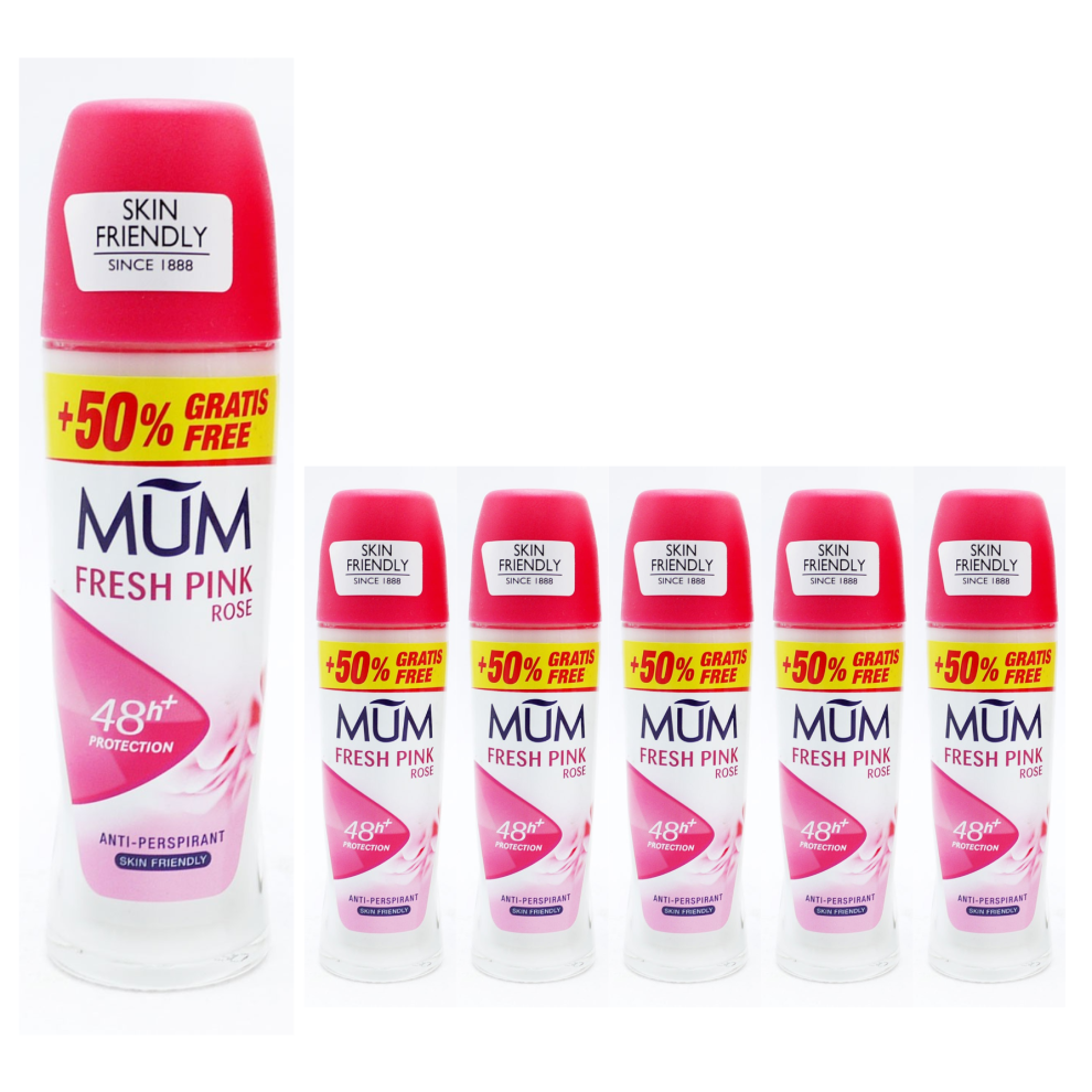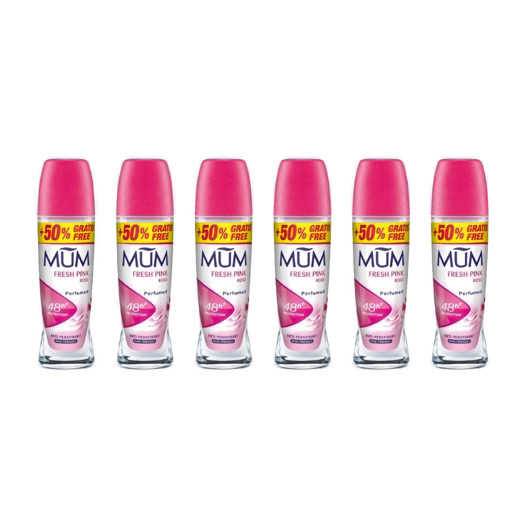 6x Mum Roll On Fresh Pink Rose 48H Anti Perspirant Deodorant 75ml Alcohol Free