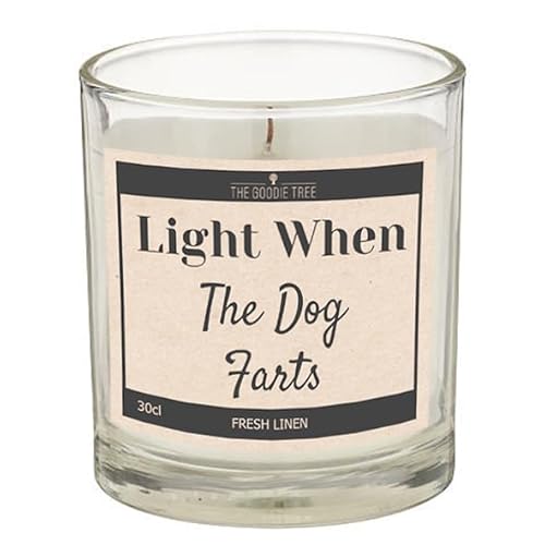 Light When the Dog Farts Fresh Linen Scented Candle 30cl - Includes Gift Box - Funny Gift Ideas - Christmas - Birthdays - for Mum, for Dad - for Men & Women, Friends, Soy Blend