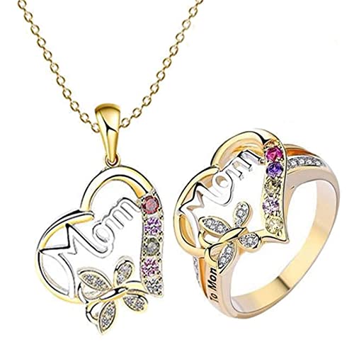 GXNRHG Jewellery Set Rings Necklace with Pendant Mum Heart with Butterfly Cubic Zirconia Mother's Day Women's Necklace Chain for Women, Copper, Cubic Zirconia