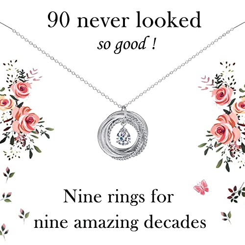 VOSAP 90th Birthday Gifts for Women, Best Friend Birthday Gifts, Sterling Silver 9 Rings Chain Necklace Jewellery 90th Birthday Gifts for Her Mum Sister Nana