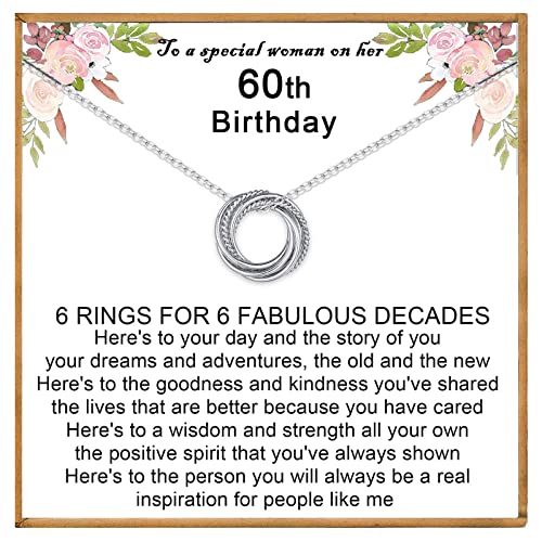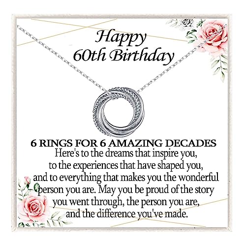 VOSAP 60th Birthday Gifts for Women, 60 Birthday Gifts for Best Friends, Sterling Silver 6 Rings Necklace Jewellery 60th Birthday Gifts for Her Mum
