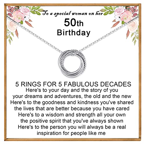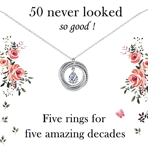 VOSAP 50th Birthday Gifts for Women, 50 Birthday Gifts for Best Friends, Sterling Silver 5 Rings Necklace Jewellery 50th Birthday Gifts for Her Mum