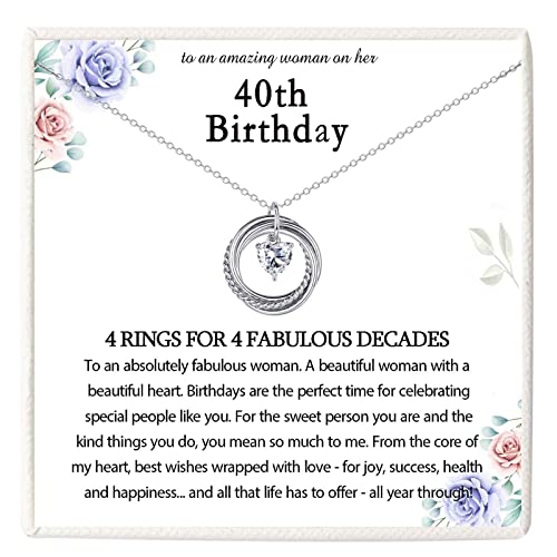 KORAS 40th Birthday Gifts for Women, 40 Birthday Gifts for Her, Sterling Silver Necklace Jewellery with 4 Rings, 40th Gift Ideas for Friend Daughter Sister Mum