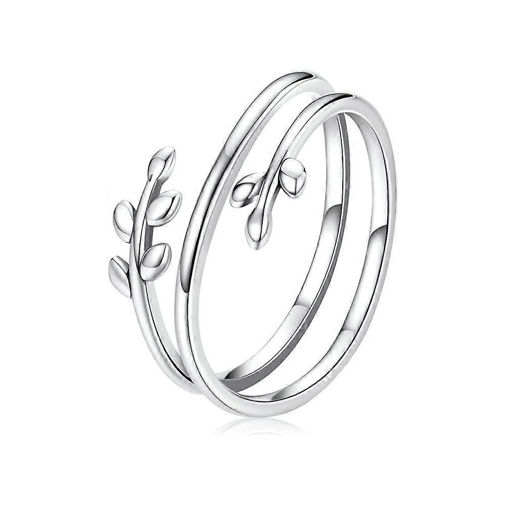 (As show, One size) Cute Tree Leaf-Star Double Ring 925 Sterling Silver Open Rings Adjustable Size Simple Style for Women Girls Gifts for Her Mum