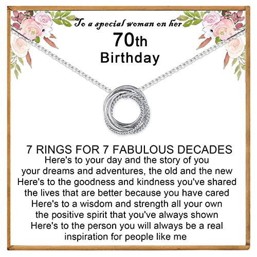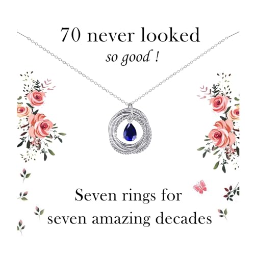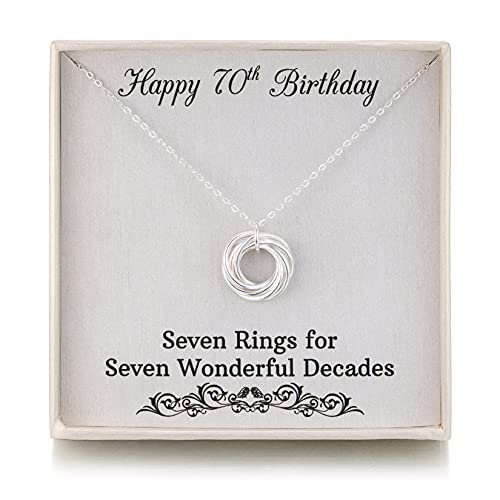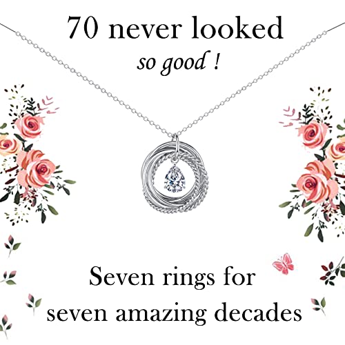 VOSAP 70th Birthday Gifts for Women, 70 Birthday Gifts for Best Friends, Sterling Silver 7 Rings Necklace Jewellery 70th Birthday Gifts for Her Mum