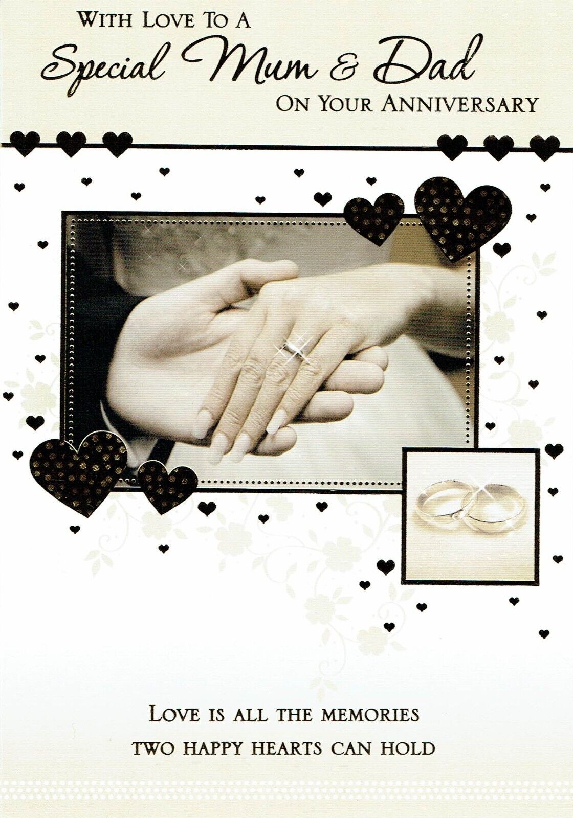 MUM AND DAD ANNIVERSARY CARD, Quality Card Rings Design