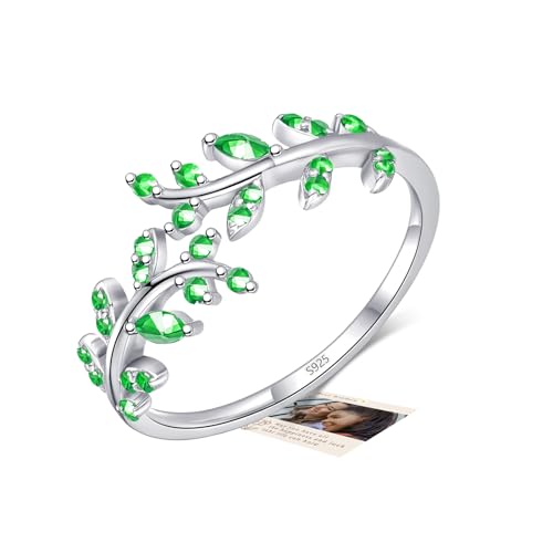 Green Thumb Rings for Women, Silver Rings for Women, Olive Leaf Ring Thumb Wrap Around Rings Women, Sterling Silver Adjustable Rings for Girls Jewellery Gifts Mothers Day Gifts for Mum