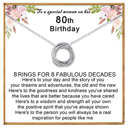 VOSAP 80th Birthday Gifts for Women, 80 Birthday Gifts for Best Friends, Sterling Silver 8 Rings Necklace Jewellery 80th Presents for Her Mum Nana