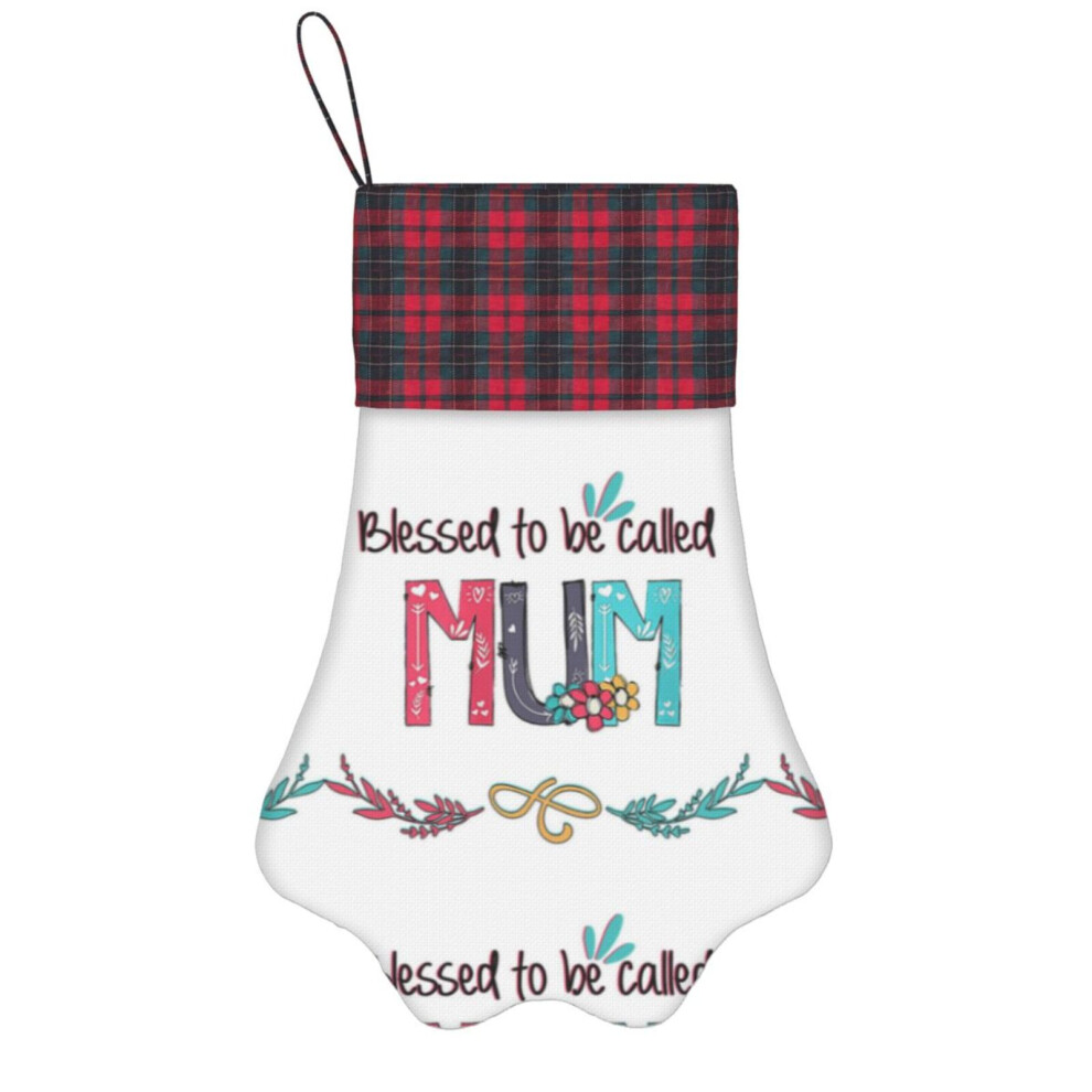 (Wildflower Blessed To Be Called Mum Flower Happy Birthday Mothers Day Halloween Merry Christmas=1903) Paw Christmas Stockings Buffalo Tartan Plaid fo