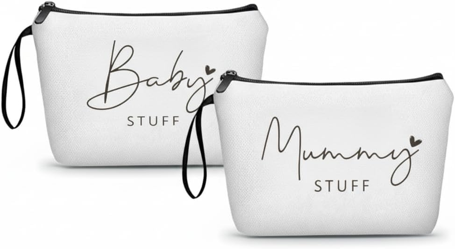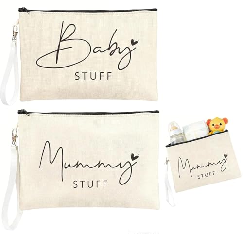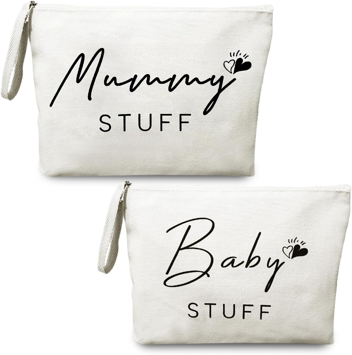 2Pcs New Mum Gifts Canvas Bag Set, Mum to Be Gift Zipper Pouch, Baby Shower Gifts for Mums, Pregnancy Present for Expecting Mother Baby New Mom Gift, Mummy & Babys Storage Cosmetic Bags