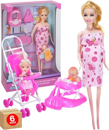 Electoys Doll Set for Children Mum-to-Be Doll with Dolls Pushchair Walker Pink Stroller Handbag Imaginative Role Play Dolls and Accessories Gift for Kids 2 Pack