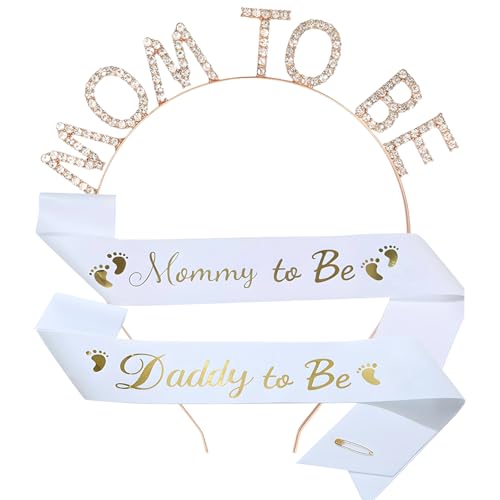3 Piece Set Mum To Be Sash, Baby Shower Sash Mummy To Be, Daddy To Be Party Decoration Mom Crown Expectant Mother Gifts for Baby Welcome Party Mummy To Be Sash