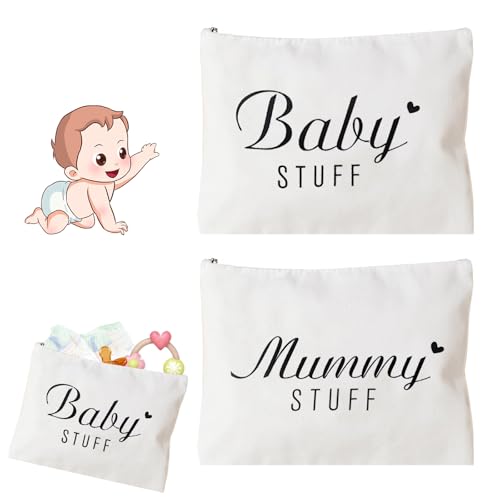 2 Pcs New Mum Gifts Mum to Be Gifts Personalised Baby Shower Gifts Bag White Canvas Makeup Bag Pouch with Zipper Pregnancy Pamper Gift New Baby Gifts for Pregnant Women