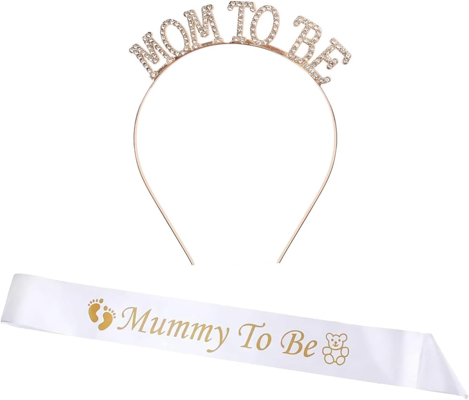 ALLY-MAGIC Mummy To Be Sash and Tiara, Baby Shower Party Decoration Mummy Sash Party Accessories Kit for Gifts to Mum Accessories Decor Favour Party Supplies Y4YYTZ