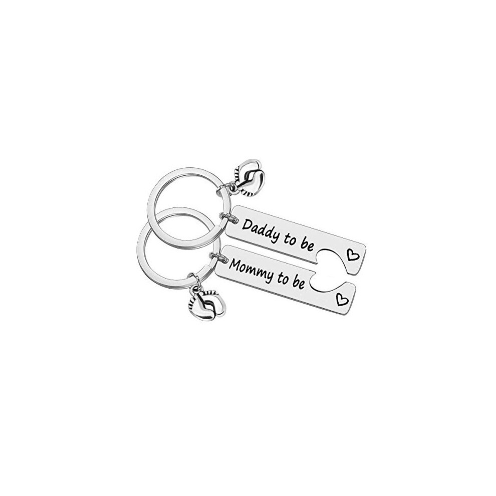Pregnancy Announcement Gifts Mum Daddy to Be Keyring Set with Baby Footprint Charm New Parents Gifts First Time Mum Dad Gifts Baby Announcement Gifts?