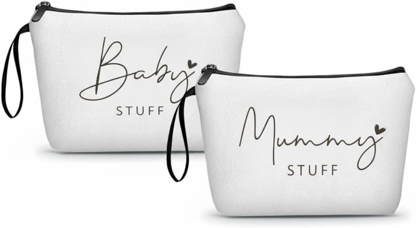 Mum to Be Gifts – New Mum Gifts Baby Shower Set, 2 Pcs White Canvas Cosmetic Bag