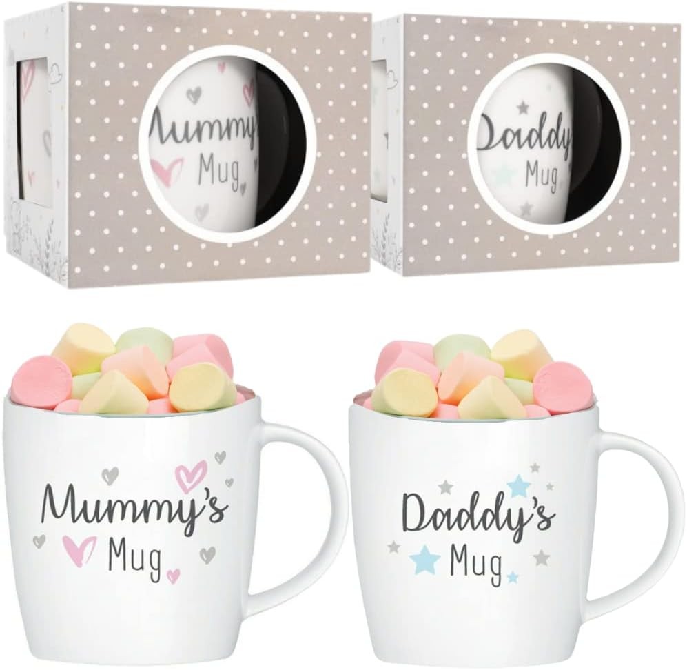 Set of 2 - Mummy Daddy Mugs Baby Shower Gifts - New Mum Gifts Mum to Be New Par