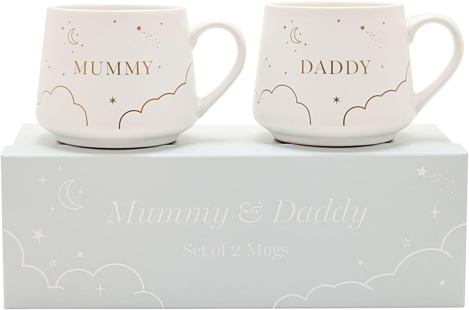 Faithful Prints Mummy & Daddy Mug Gift Set FP-10962, 2x300ml Mugs for New Parents, Dishwasher Microwave Safe