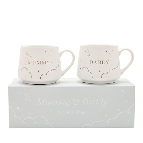 Widdop Bambino Set of 2 Mummy and Daddy Mugs - Stoneware Ceramic Mug - White Colour - Coffee Mug Tea Hot Drinks - Approx 350ml - Gift for Newborn New Parents Baby Shower Present