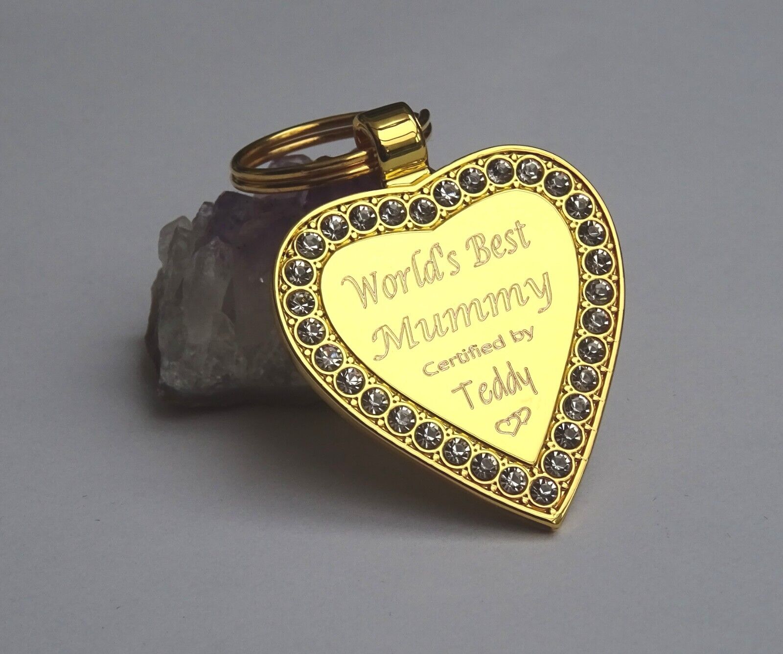 STUNNING GOLD DIAMANTE HEART KEY RING WORLDS BEST MUMMY PERSONALISED IN GIFT BAG