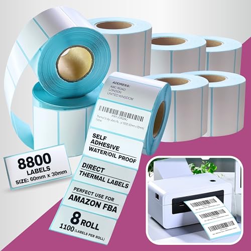 8800 Direct Thermal Labels for Amazon FBA UPC Barcode Self-Adhesive Address Shipping Thermal Sticky Labels Compatible with JADENS, Itari, Munbyn, Zebra Thermal Label Printer 1100/Roll (60mm x 30mm)