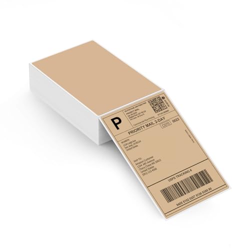 MUNBYN Thermal Labels 4x6 Fanfold for Label Printer, Compatible with Etsy, Shopify, Ebay, Amazon, Royal Mail, FedEx, UPS, Pack of 220, Brown