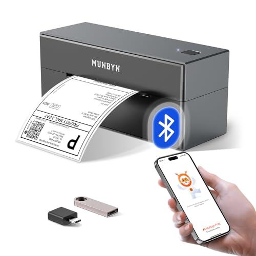 MUNBYN Bluetooth Shipping Label Printer, 4x6 Bluetooth Thermal Label Printer for Small Business, Compatible with iPhone, Android, Windows, macOS, Etsy, Shopify, eBay, Royal Mail, DHL, DPD, Evri, 411B