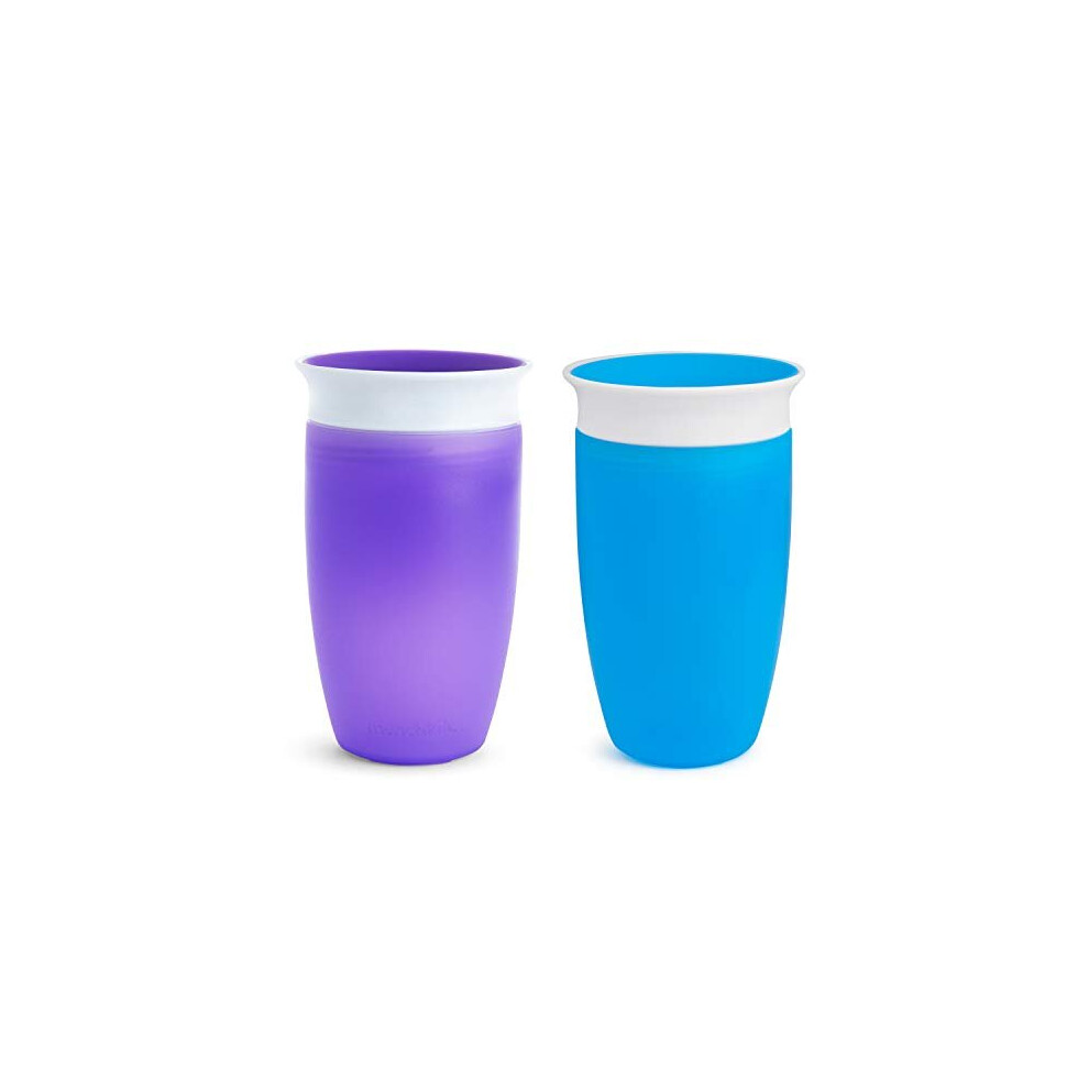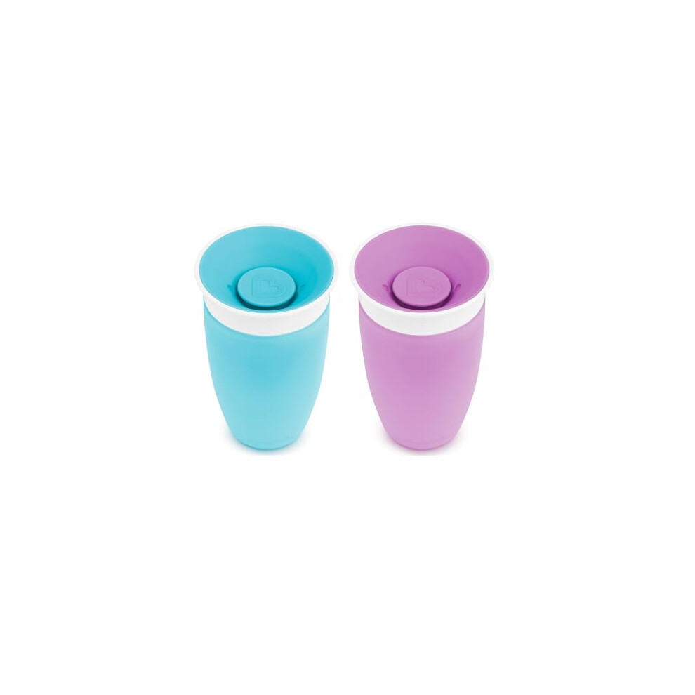 Munchkin Miracle 360 Cup, Baby and Sippy Cup, Ideal Sippy, Water and Weaning Cup 12+ Months, 10 oz/ 296 ml, 2 Pack, Purple & Blue.