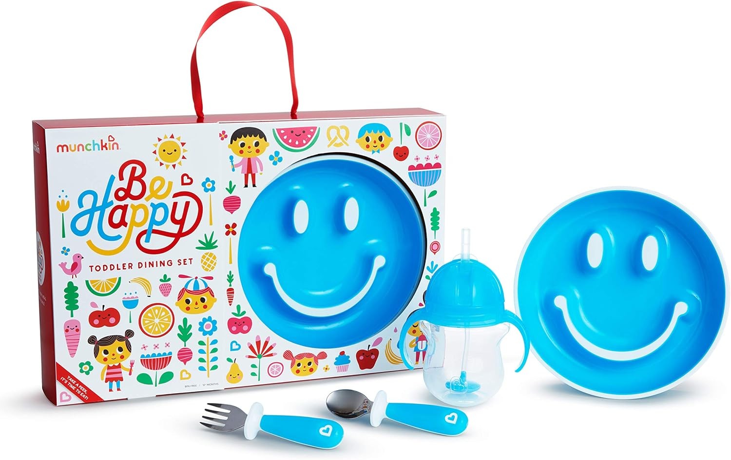 Munchkin Be Happy Toddler Dining Set Includes Suction Plate Straw Cup and Utens