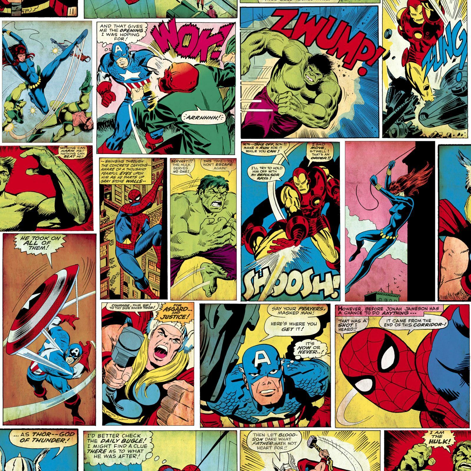 Marvel Comic Strip Wallpaper Hulk Captain America Spiderman Multicoloured Muriva