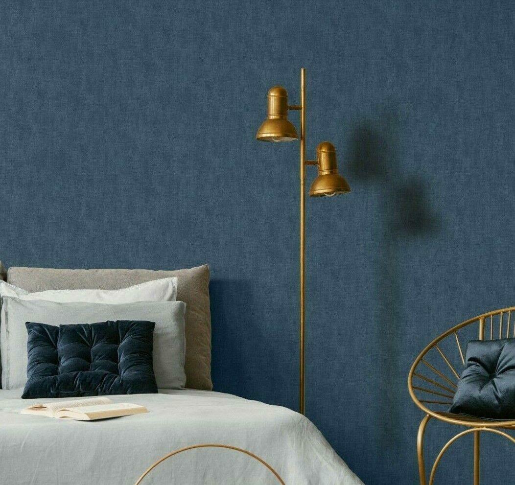 Muriva Linen Effect Texture Blue Slight Metallic Denim Fabric Effect Wallpaper