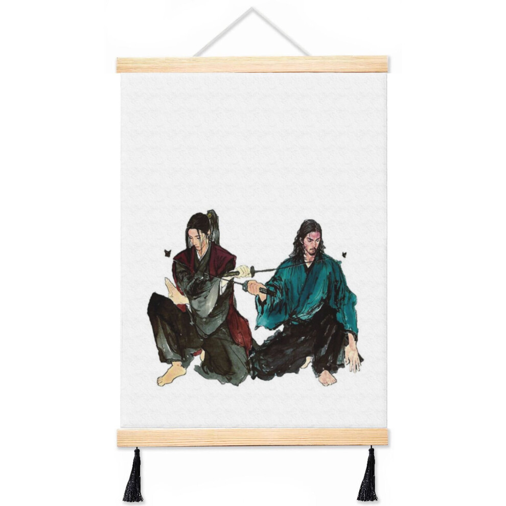 (Inoue Takehiko Vagabond Manga Musashi Miyamoto Vs Sasaki Kojiro_1615) Canvas Poster Hanging Kit Frame 16x20 Inch Wall Hanger with Tassels Art Home De